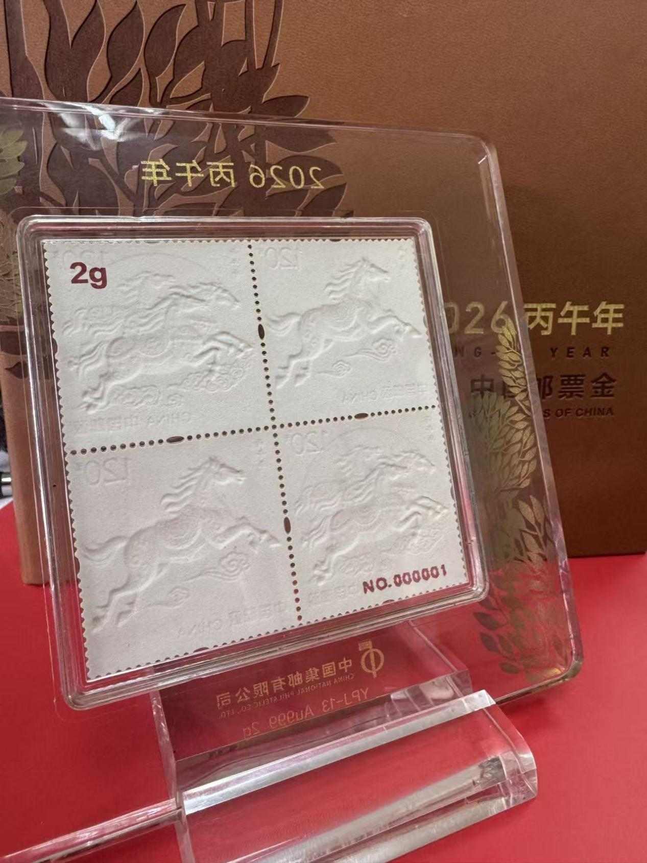 中国集邮有限公司于2026年1月5日重磅推出系列编号贵金属制品——《丙午年》邮票金。