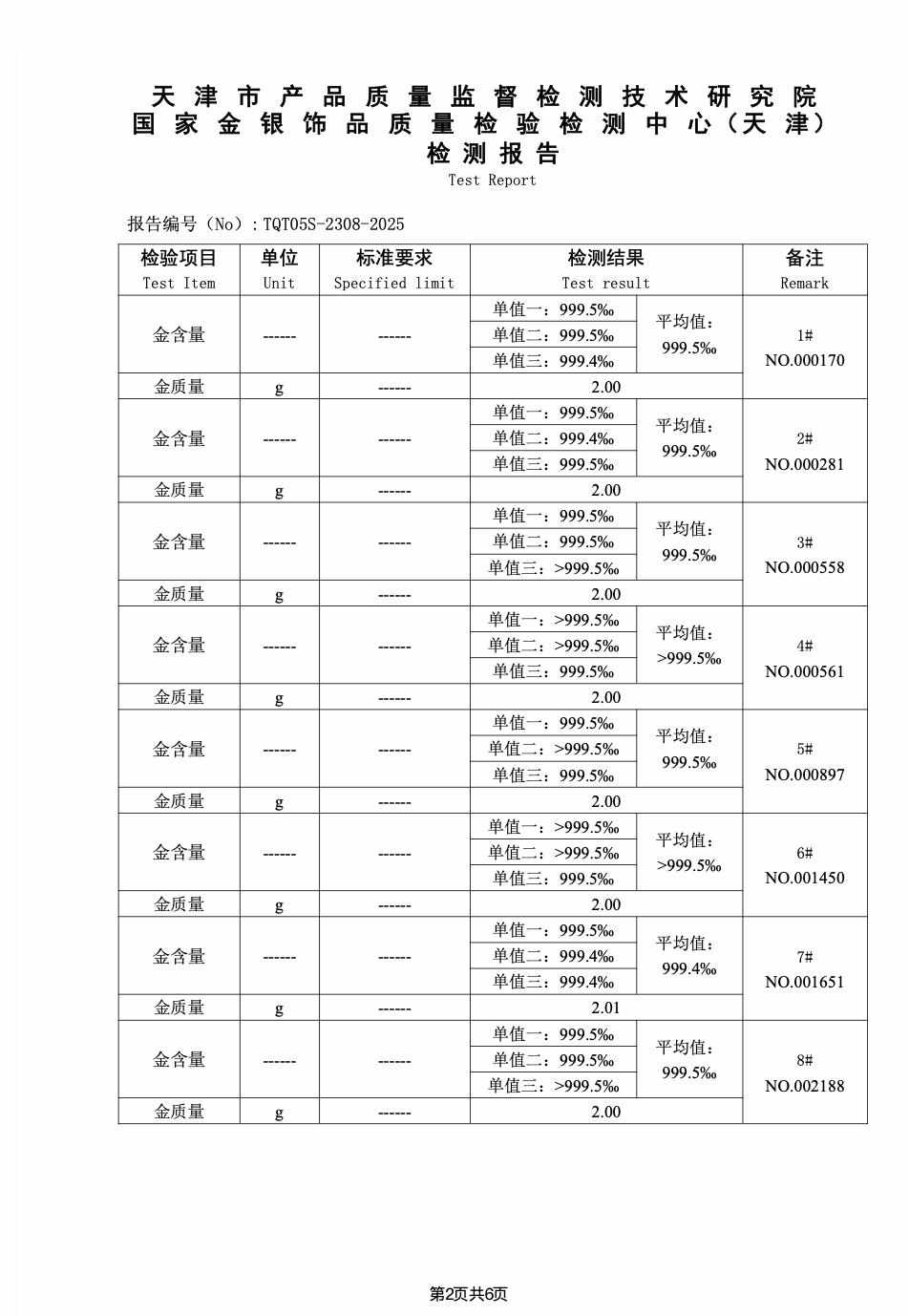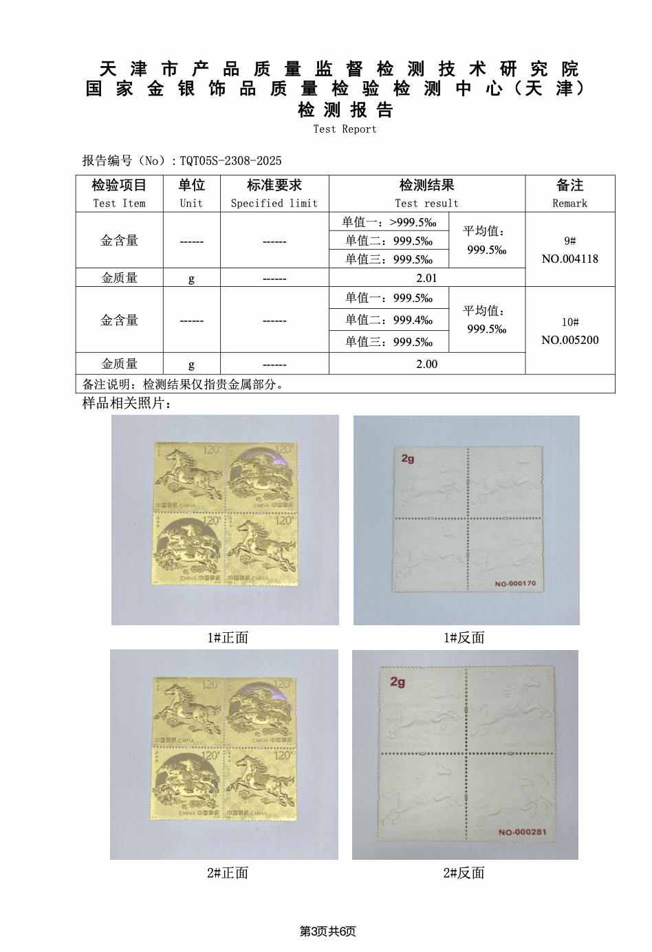 贵金属制品规格: