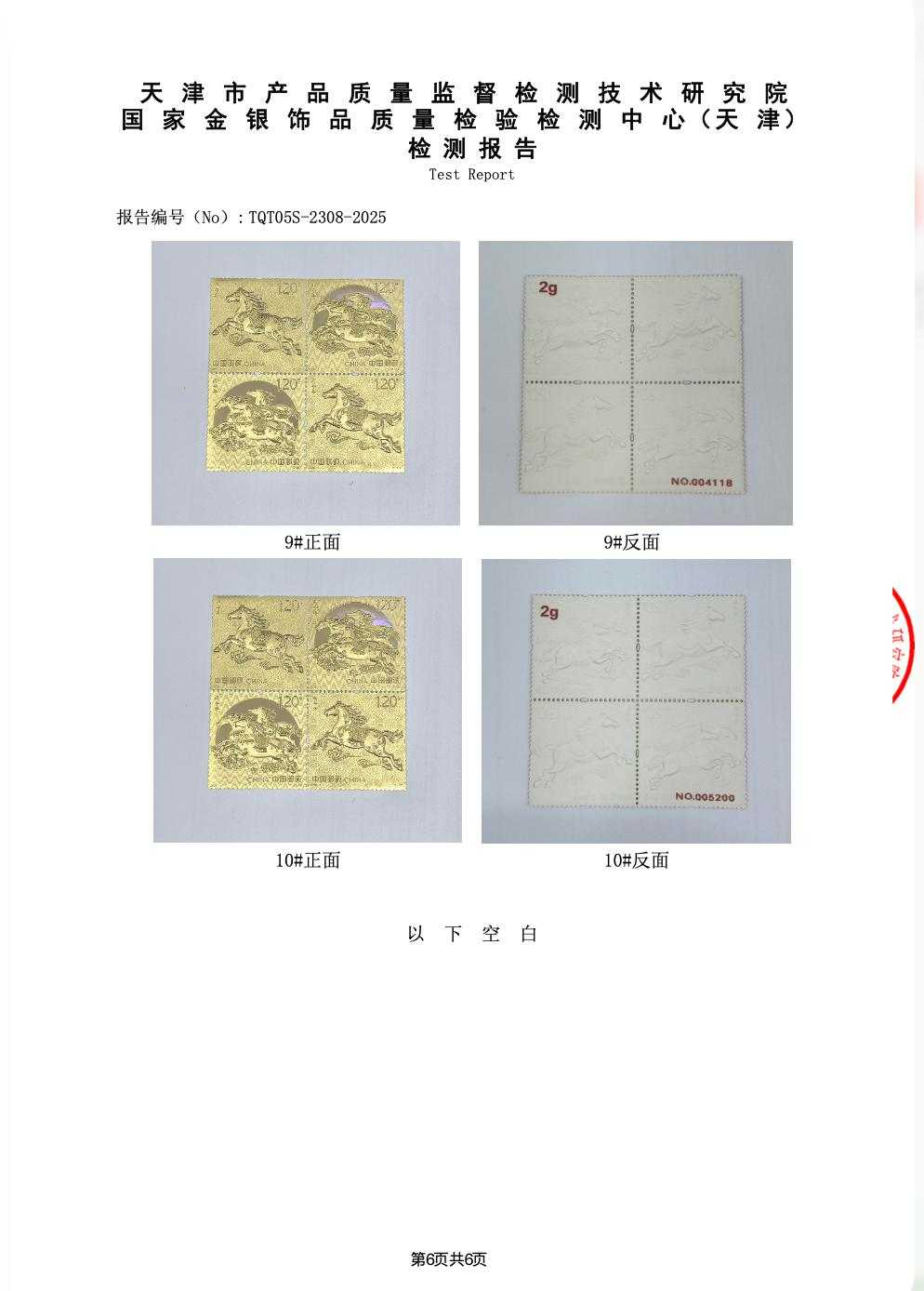 (2)邮票纸防伪:使用中国邮政独有的邮票纸与贵金属完美结合。