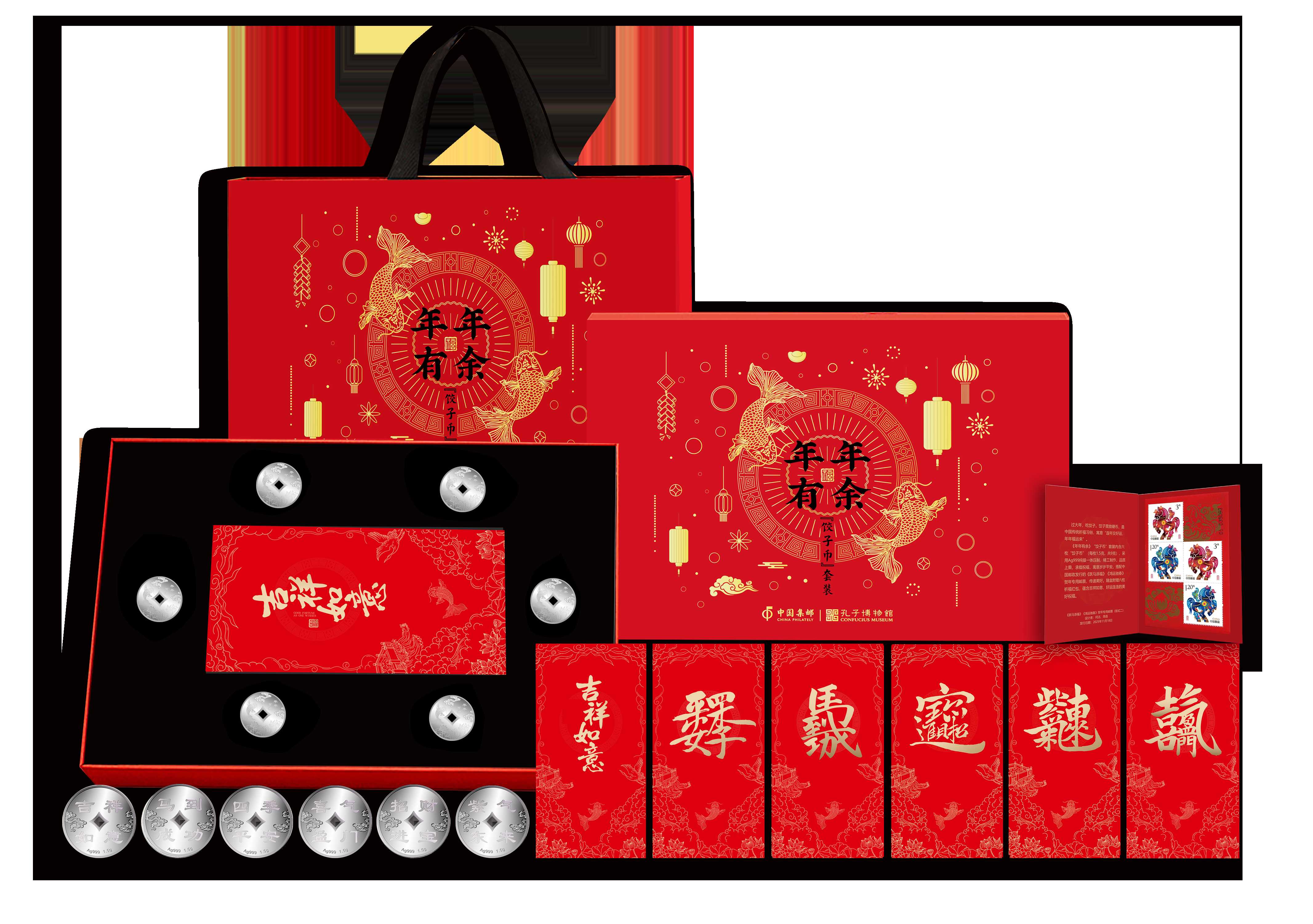 过大年,吃饺子,饺子里放硬币,是中国传统祈福习俗,寓意“连年交好运,年年福运来”。在丙午马年即将到来之际,中国集邮有限公司发行《年年有余》“饺子币”套装产品。