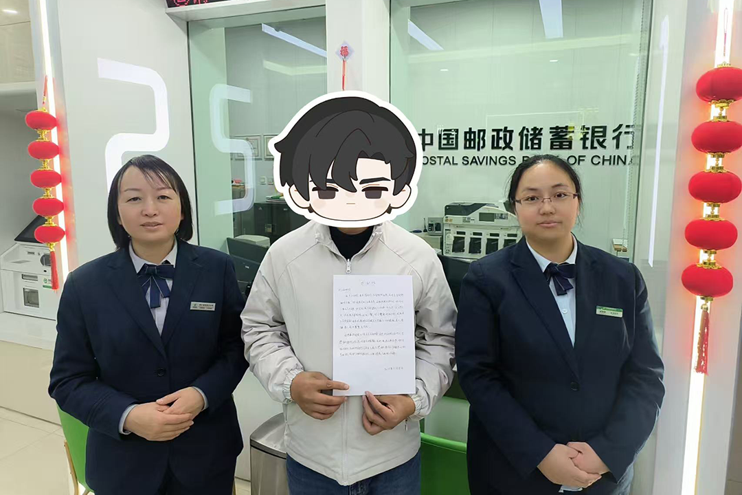 11月18日下午,在校大学生小张走进了新乡县朗公庙邮政支局营业厅。一进门,他就将一封表扬信交到支局工作人员手中,真诚表达了自己的感激之情。“多亏了你们及时阻止我转账,让我没有继续上当受骗,避免了我5万元的损失。”小张说。