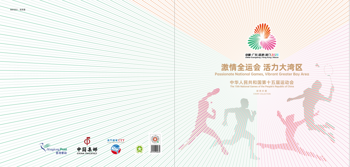 中国集邮有限公司于2025年11月9日发行《激情十五运 活力大湾区》中华人民共和国第十五届运动会纪念邮折。内插《中华人民共和国第十五届运动会》同题材小全张一枚。